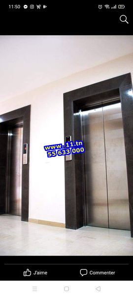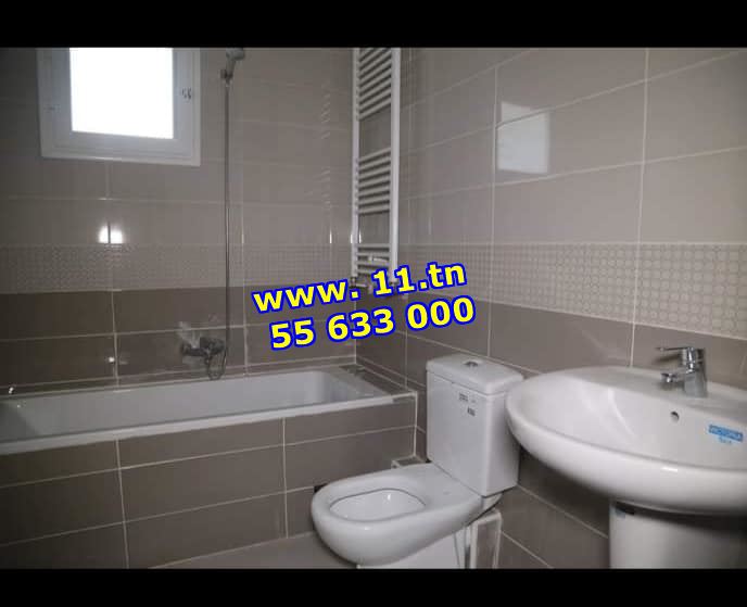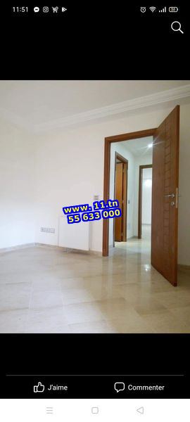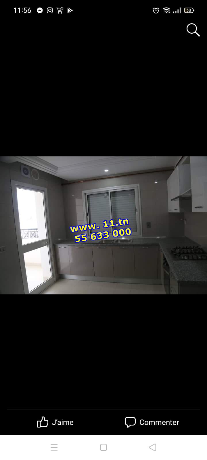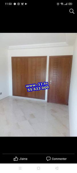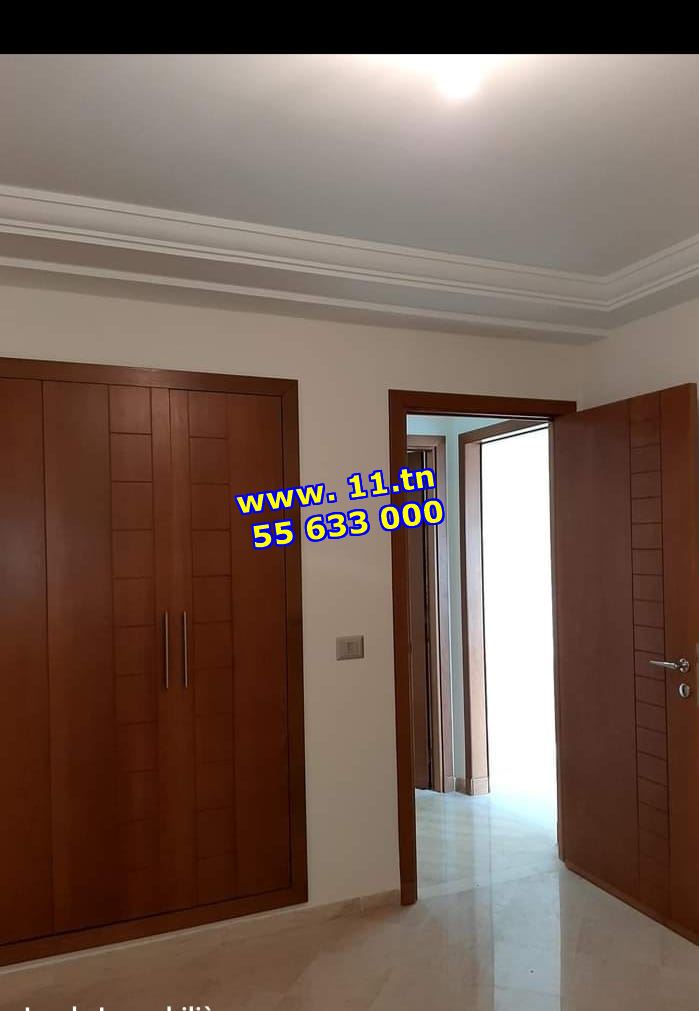 A Vendre S+2, 1 étage, Haut Standing, bien ensoleillé, Cuisine bien équipée, Salon spacieux ensoleillé, chauffage central, double grand placard, 3 balcon, sol en marbre , salle de bain et salle d’eau, dans une résidence gardée jour et nuit et avec des caméras de surveillance, Bonne voisinage
